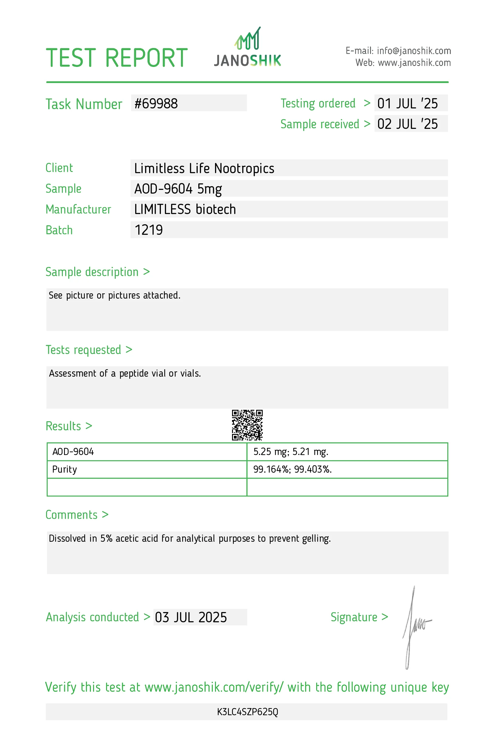 Trials confirm that AOD 9604 is non-immunogenic and does not affect natural growth hormone levels, demonstrating a favorable safety profile for research [7].